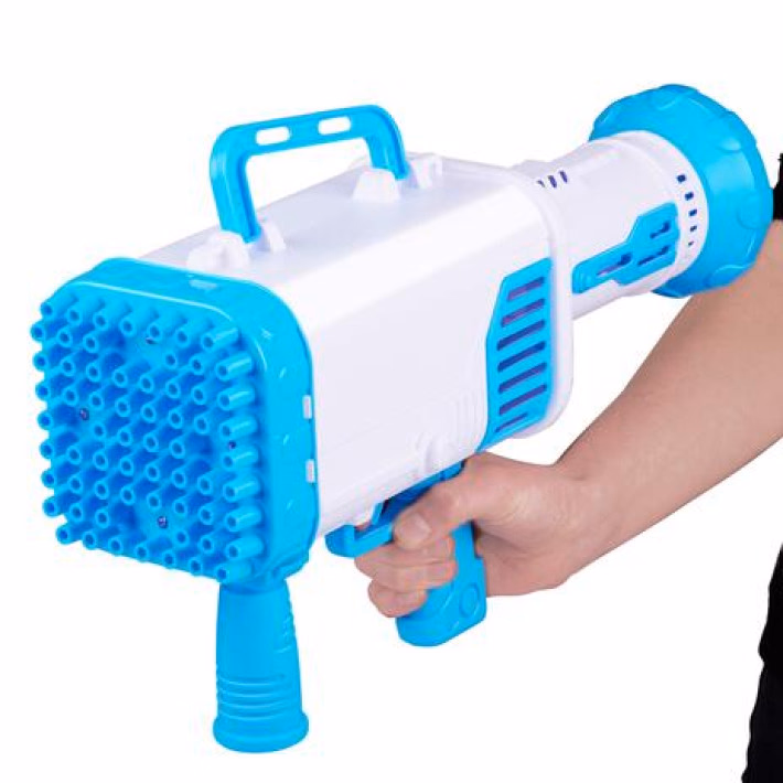 BUBBLEZ Buborékfújó fegyver 36 lyuk, világít, 50ml folyadék, tölthető elemek
