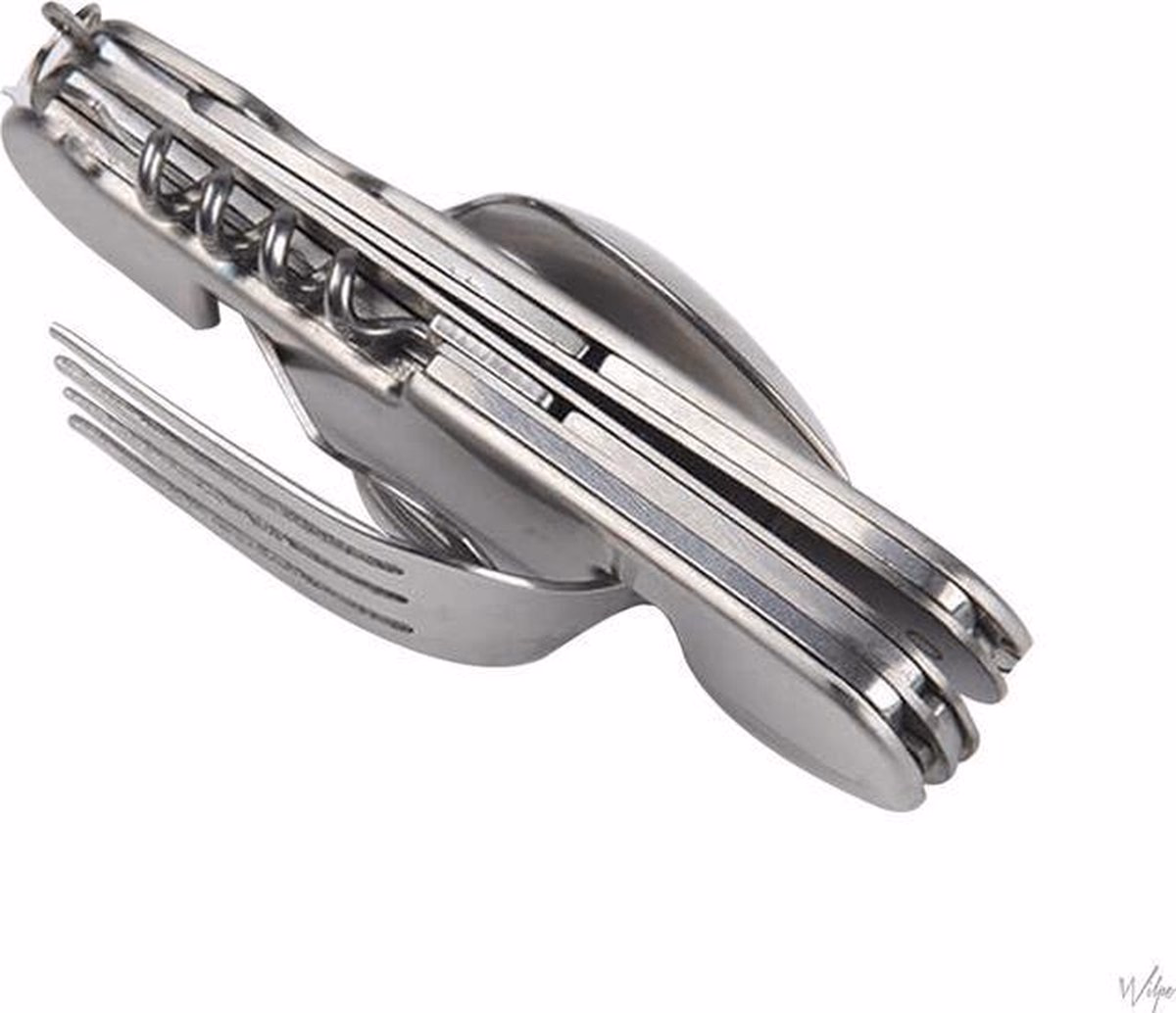 Ezzel a kompakt 6 az 1-ben evőeszköz készlettel minden kéznél van: kanál, villa, kés, teáskanál, dugóhúzó és sörnyitó.