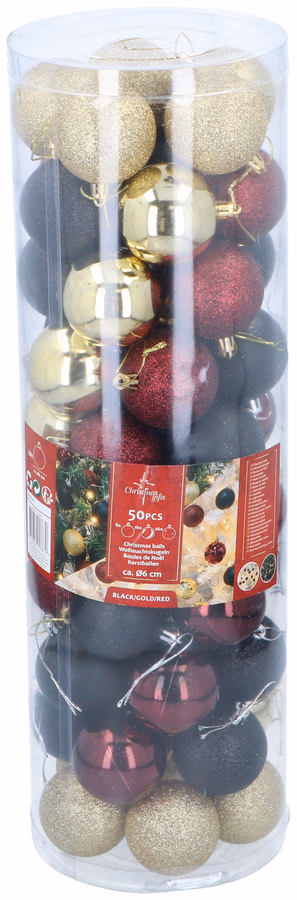 CHRISTMAS GIFTS Karácsonyfadísz gömb D6cm 9gr 6x6cm Műanyag fekete/arany/piros