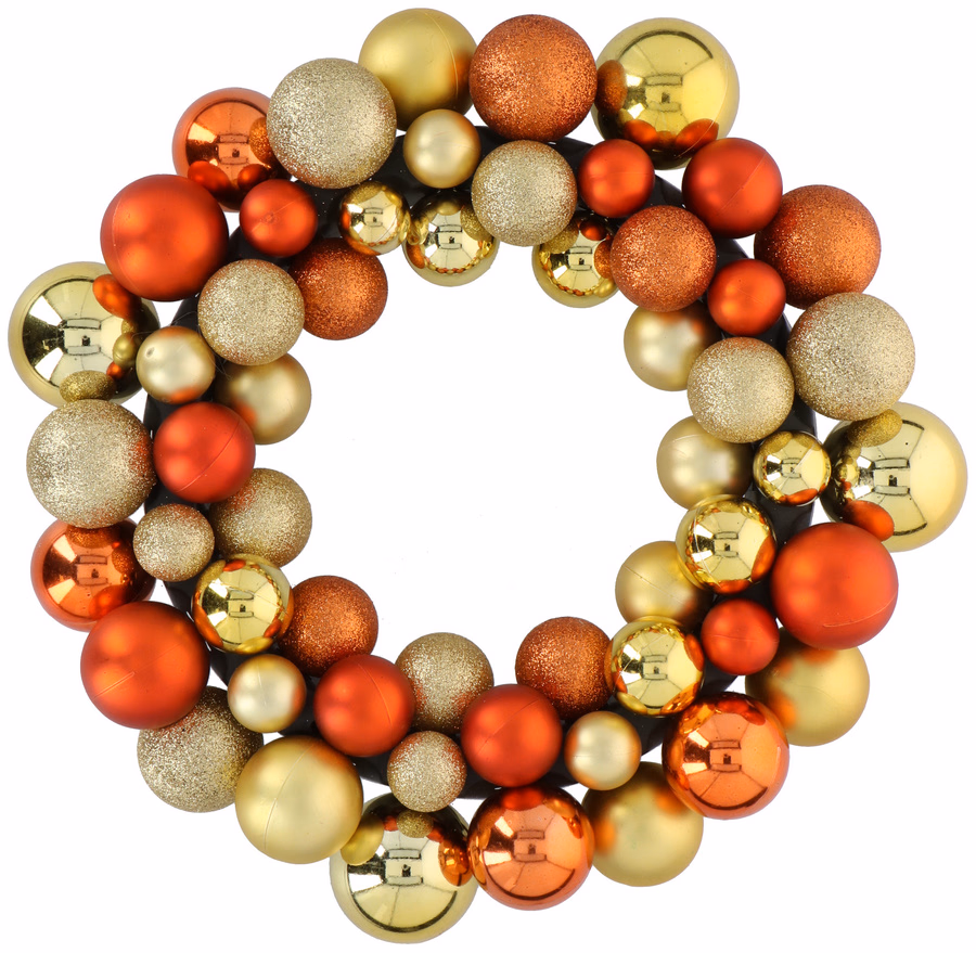 CHRISTMAS GIFTS Karácsonyi gömb koszorú 55db réz 36x8cm 250gr PP műanyag