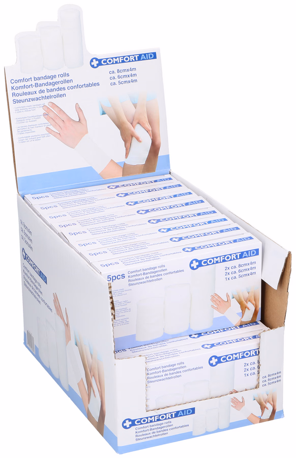 COMFORT AID elasztikus bandázs kötöző 5 darab: 2x(8cmx4m) / 2x(6cmx4m) / 1x(5cmx4m), displ(20)
