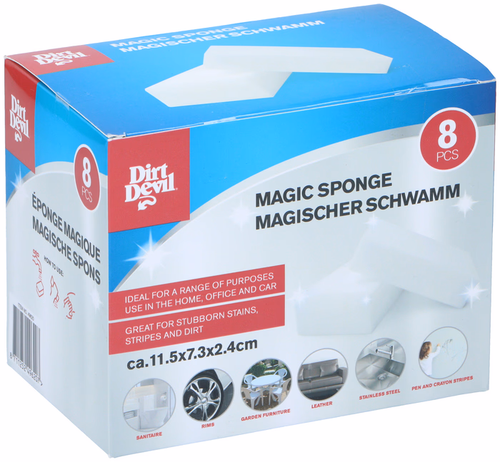 A csodaszivacs, más néven mágikus radír, melaminból készült tisztítószer. A Dirt Devil Mágikus szivacs erőteljes hatást fejt ki tisztítószer használata nélkül, ami a szivacs nevét is adja. A szivacsot csak vízzel kell megnedvesíteni.A csodaszivacs hatékonyan eltávolítja a szennyeződéseket és foltokat a különböző sima felületekről, textíliákról és bőrről.
