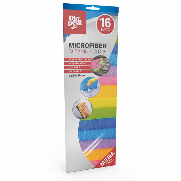 Ez a Dirt Devil mikroszálas törlőkendőcsomagja 16 darabot tartalmaz, különböző vidám színekben. Így mindig kéznél lesz egy tisztítókendő.