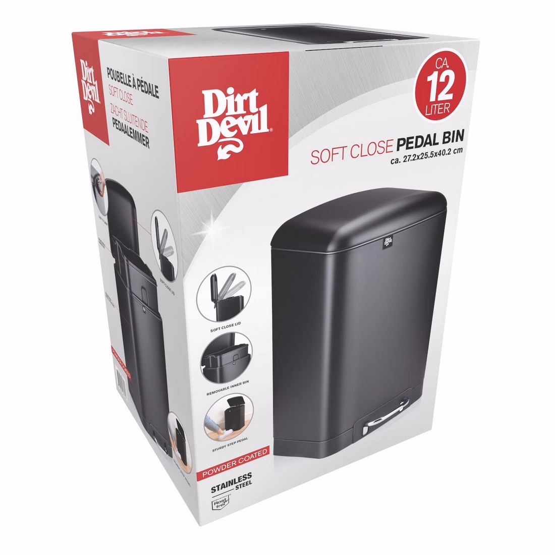 DIRT DEVIL Pedálos szemetes, 12 L, soft close, 27,2×25,5×40,2 cm, 12 L, 2 db, 1829 g, porszórt bevonat