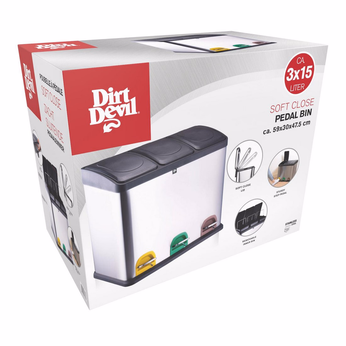 DIRT DEVIL Pedálos szemetes, 3×15 L, 4 db, 59×30×47,5 cm, 3×15 L, 6154 g | Adob Kft.