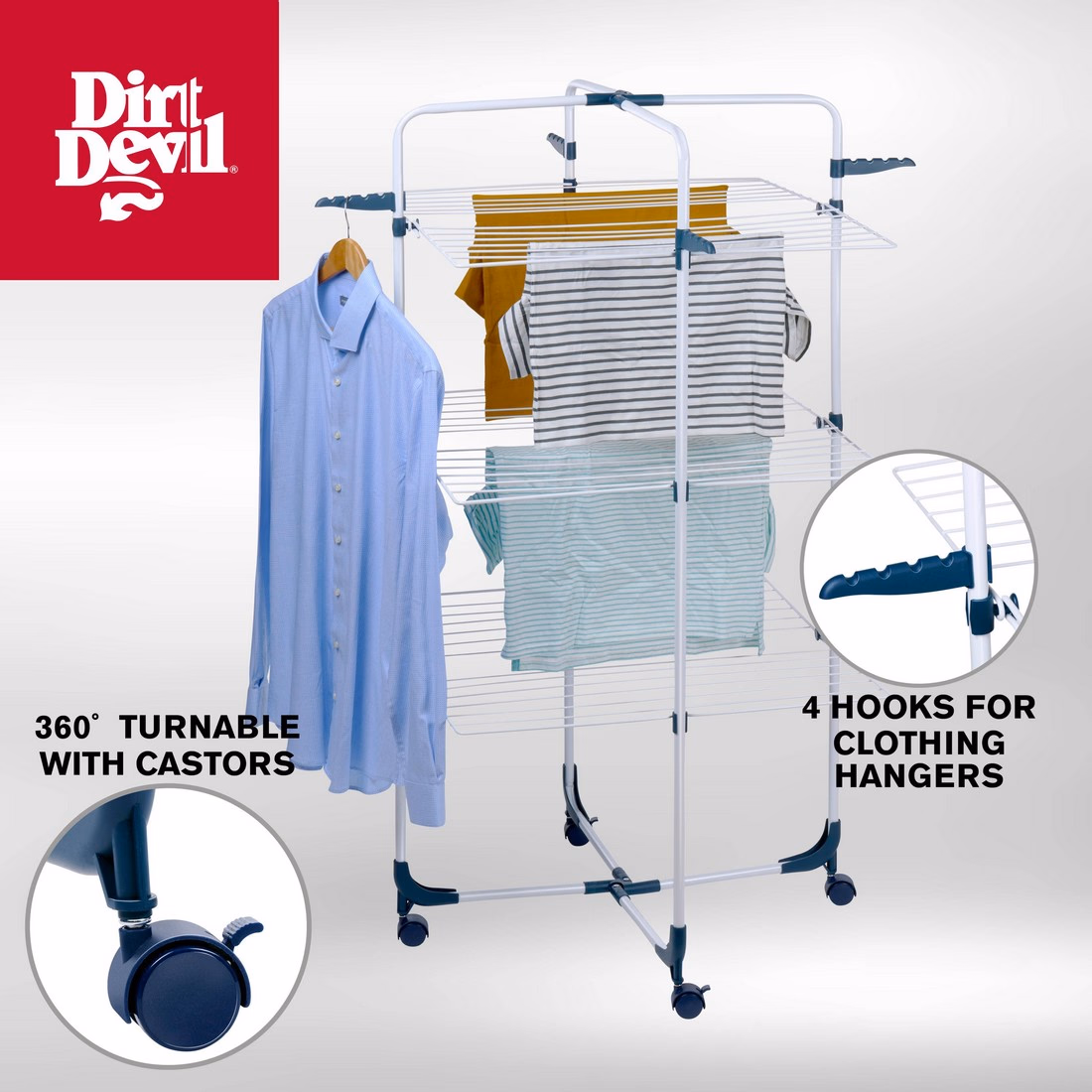 DIRT DEVIL Ruhaszárító 30 m 134×68×68 cm fehér Ø16 mm acélcső
