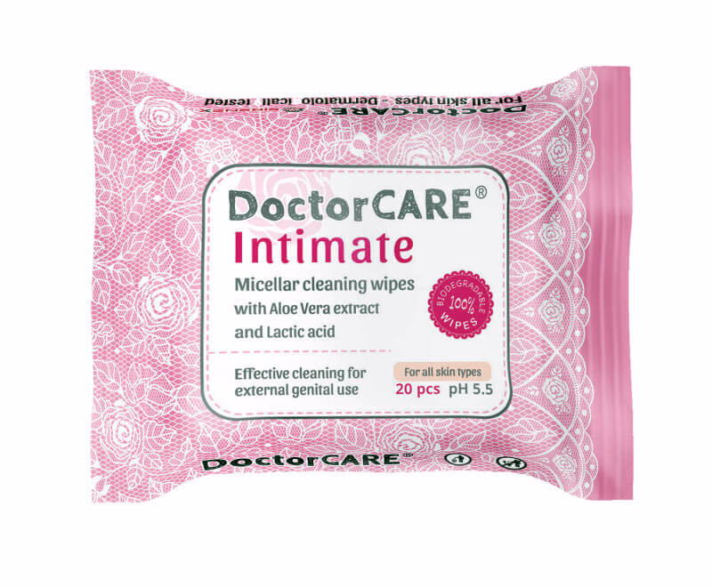 Doctor Care Micellás törlőkendő aloe vera kivonattal és tejsavval az intim területek tisztítására, 20db 100%-ban biológiailag lebomló