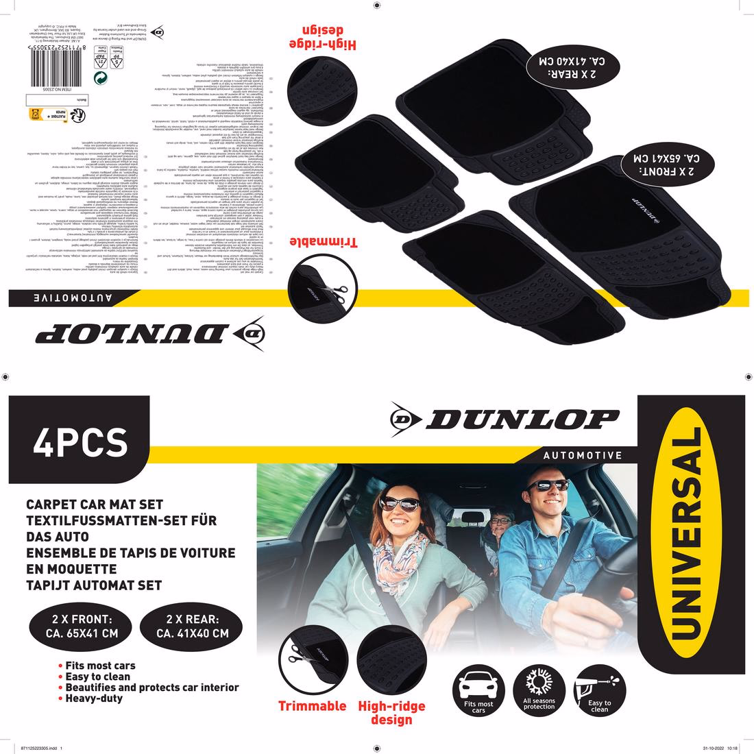 DUNLOP Autószőnyeg 4db Első: 65x41cm 65x41cm Hátsó: 41x40cm 1,6kg PES