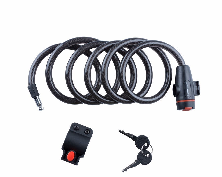 DUNLOP kerékpár kábelzár D1,2x180cm, tartóval nyeregcsőhöz, 480g, 2 kulcs