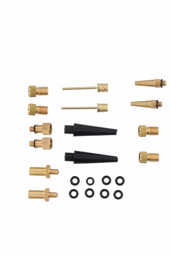 A készlet 6 különböző típusú adaptert tartalmaz mindenféle gumihoz, labdához és felfújható játékhoz.