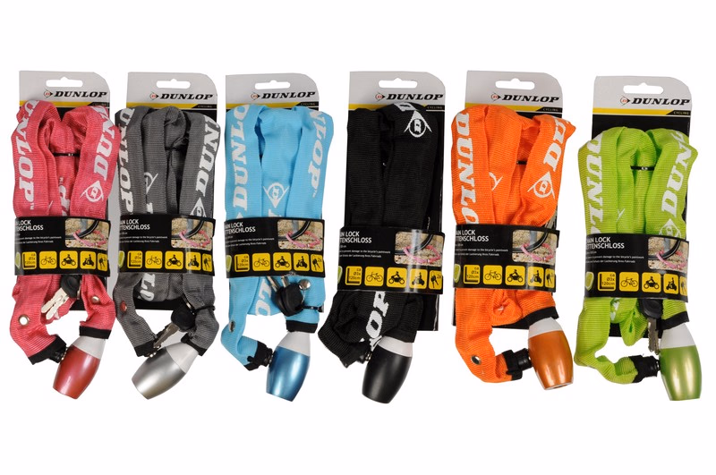 DUNLOP kulcsos kerékpár zár lánc 3mmx120cm 2 kulcs 6 színben
