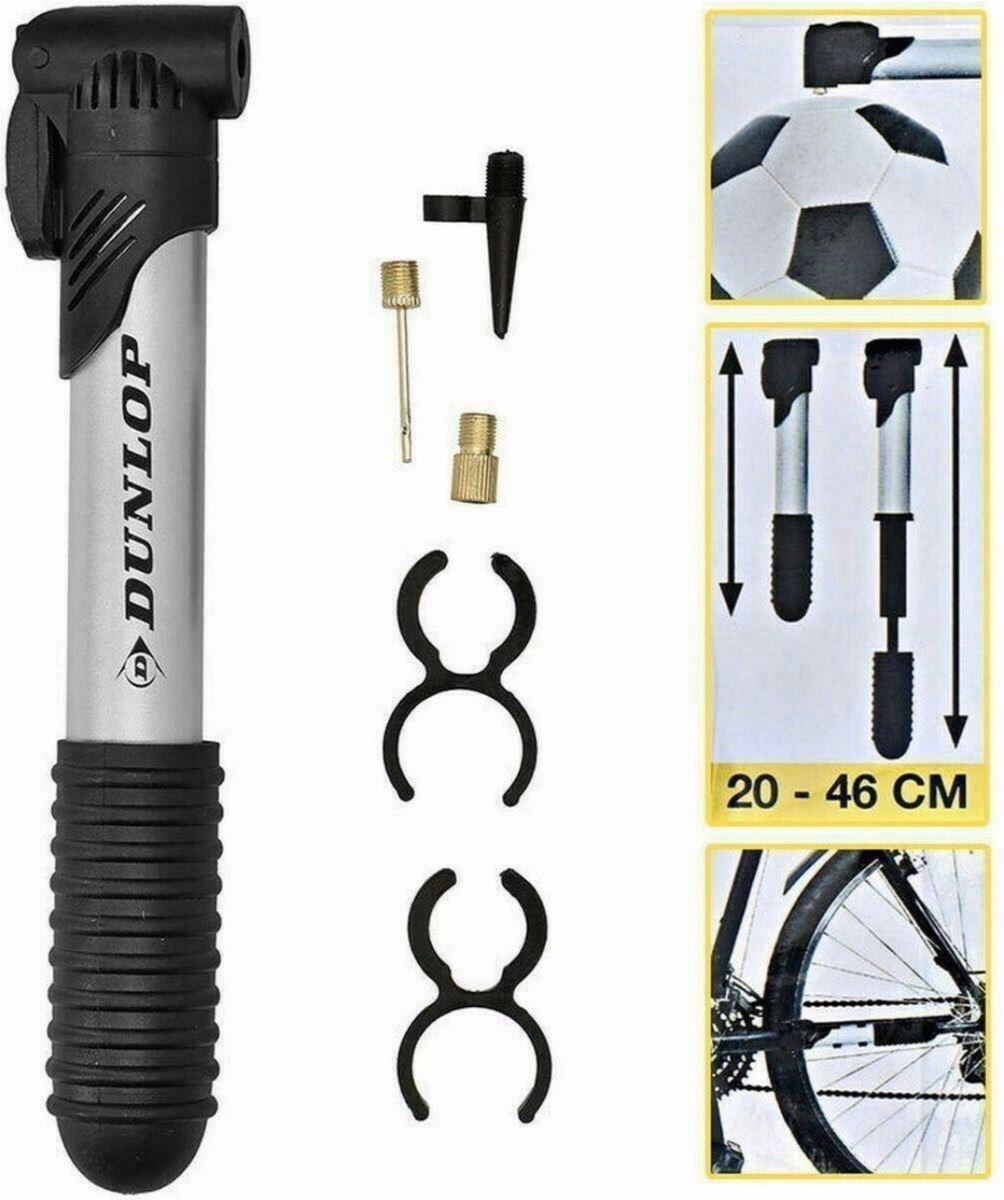 DUNLOP mini kerékpár pumpa, max 6bar, 3 adapterrel. Vázra szerelhető.