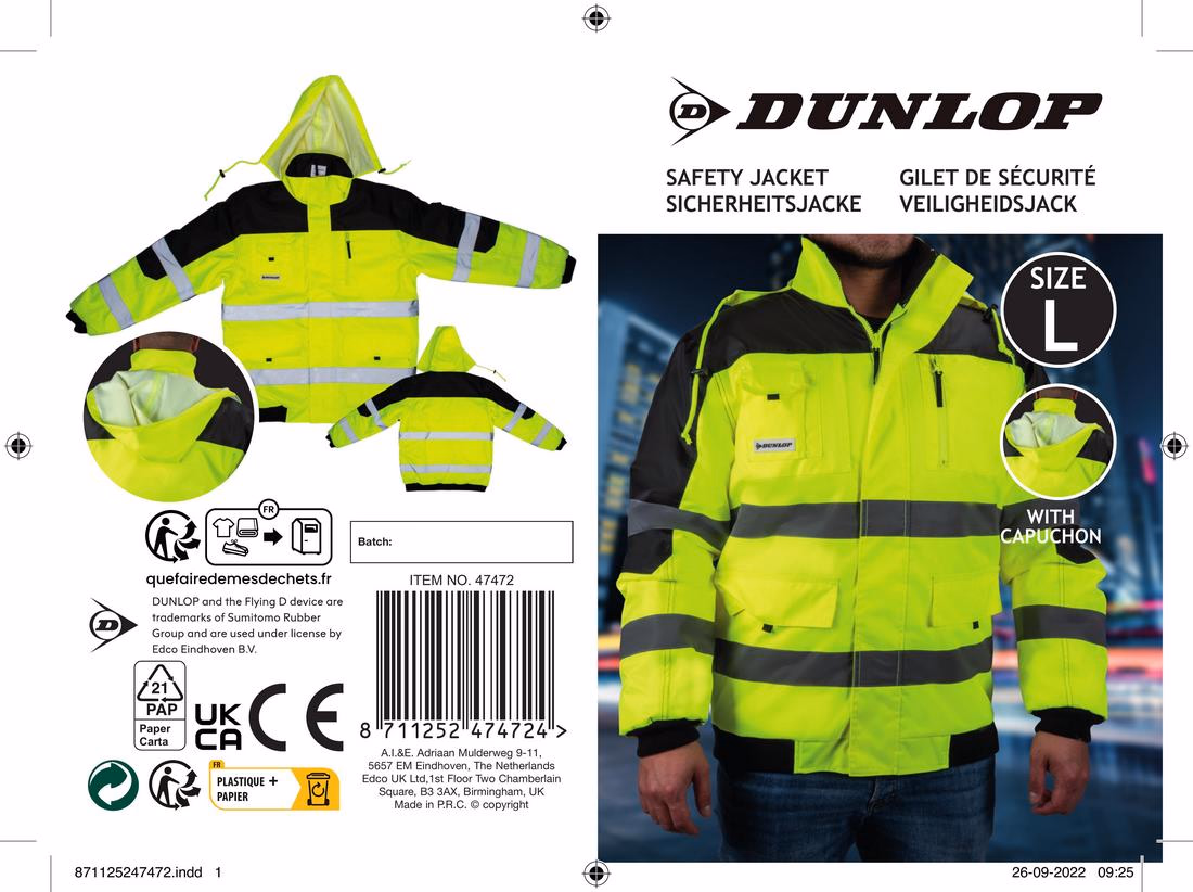 DUNLOP Munkavédelmi kabát Méret: L Polybag Lb 100%PES Sárga CE