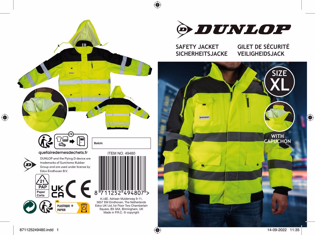 DUNLOP Munkavédelmi kabát Méret: XL Polybag Lb 100%PES Sárga CE