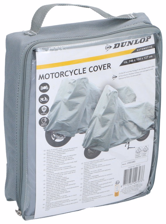 A Dunlop motorkerékpár- és robogóhuzat ideális védelmet nyújt robogók és motorkerékpárok számára. Víz- és időjárásálló, valamint védi a járművet az UV-sugárzástól. Univerzális méretének köszönhetően (246 x 104 x 127 cm) szinte minden robogóra és motorkerékpárra illeszkedik, és szélvédőre is használható. Ezzel a huzattal biztosíthatja járműve biztonságát a szélsőséges időjárási körülmények között.