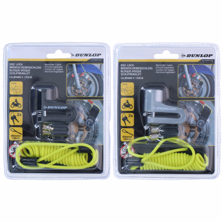 DUNLOP tárcsafék zár emlékkábellel. Tárcsás motorkerékpárok, robogók, kerékpárok lopás elleni védelmére