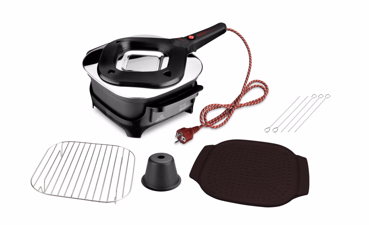 ETA Pečenka MAX elektromos sütőedény * Ételek tradicionális elkészítési módja * Sütéshez és grillezéshez (hús és hal), édes sütemények készítéséhez, dínszteléshez alkalmas * Az edényben készült ételek nem veszítik el ízüket és illatukat, a hús nem szárad ki * Magas melegítési hatékonyságának köszönhetően, hogy akár 80%-kal takarékosabb, mint a hagyományos sütő * Az üveges ablakkal felszerelt fedél a készülendő ételek könnyű ellenőrzését biztosítja * Minden konyhában használható professzionális minőség * Az ETA Pečenka eredeti dizájnja használható modern konyhába, hétvégi házba és akár kollégiumba is * Gyors és hatékony melegítés a fedélben lévő beépített fűtőelemnek köszönhetően * A munkaedény és a fedél tapadásmentes felülettel (teflon) felszereltek * Edény kapacitása 4,3 l * Edény méretei 277 x 277 x 112 mm * Hálózati kapcsoló működési fényjelzővel * A nem megfelelő összeszerelés elleni biztonsági biztosíték nem engedi a készülék bekapcsolását a fedél helytelen elhelyezése esetén * Hőszigetelt fogantyúk a biztonságos használat érdekében * Stabil állvány, amely a sütőedény bázisaként funkcionál * Rozsdamentes oldallal és speciális szellőző lyukakkal felszerelt fedél * Védő hőálló fedél az égési sérülés elkerülése érdekében * Egyszerű és gyors összeszerelés * Könnyen kivehető edény * Könnyen mosható felület * Tápkábel hossza 1,5 m * Alacsony teljesítmény felvétel 475 W Tartozékok * Védő fedele a forró edény letakarásához használható, de az elkészült étel meleg edényből való kivételéhez is. A védő fedelet lehet tálalási edénynek is használni. * Középső, sütémény készítéséhez való formája a "kuglóf" típusú süteményekhez ideális. * Grillezési rács az ételek egyszerű és egészséges elkészítését teszi lehetővé teszi (hús, hal, kolbászfélék, zöldség), fölösleges zsír és leégés nélkül.