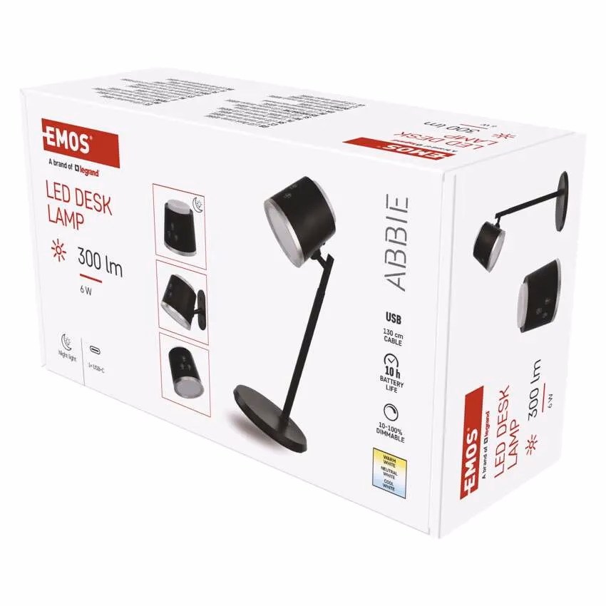 EMOS Abbie LED asztali lámpa, újratölthető, 300 lm, fekete