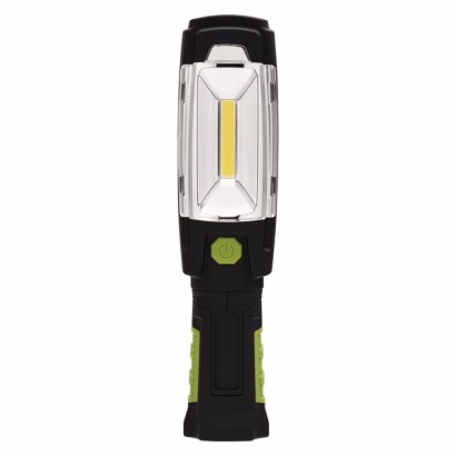 fényforrás: COB LED + LED, maximális fényárama: 380 lm, fényáram: COB LED 50 % – 200 lm, COB LED 100 % – 380 lm, LED 100 % – 20 lm, max. világítási távolság: 27 m, világítási távolság: COB LED 50 % – 19 m, COB LED 100 % – 26 m, LED 100 % – 27 m, világítási üzemmódok száma: 3, üzemmódok: COB LED 50 %, COB LED 100 %, LED 100 %, világítási idő: 3,5–24 óra, üzemidő részletezés: COB LED 50 % – 7 h, COB LED 100 % – 3,5 h, LED 100 % – 24 h, ütésállóság, vízálló: igen (IP43), tölthető, táplálás: Li-Ion akupack, akkumulátor típusa: 2 500 mAh/3,7 V, elem a csomag része, feltöltési idő: 4 óra, töltőcsatlakozó típusa: –, a töltés LED jelzése, speciális funkciók: gyors kikapcsolás funkció, akkumulátorvédelmi funkció, jellemzők: forgatható fogantyú,1× kampó,2× mágnes, tartozékok: töltő adapter, gépkocsi adapter, anyag: ABS műanyag, szín: fekete-zöld, méretek: 56 × 50 × 240 mm, súly: 265 g, értékesítési csomagolás: 1 db, doboz, garancia-időszak: 2 év