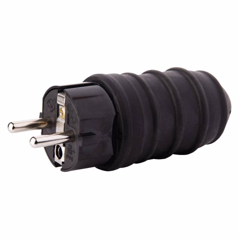 Gumi csatlakozódugó mobil hosszabbító kábelekhez. Olyan készülékek csatlakoztatásához tervezték, amelyek komolyabb védelmet igényelnek (akár kültéren is).
