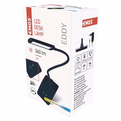 EMOS EDDY asztali lámpa fekete, dimmelhető, 360lm