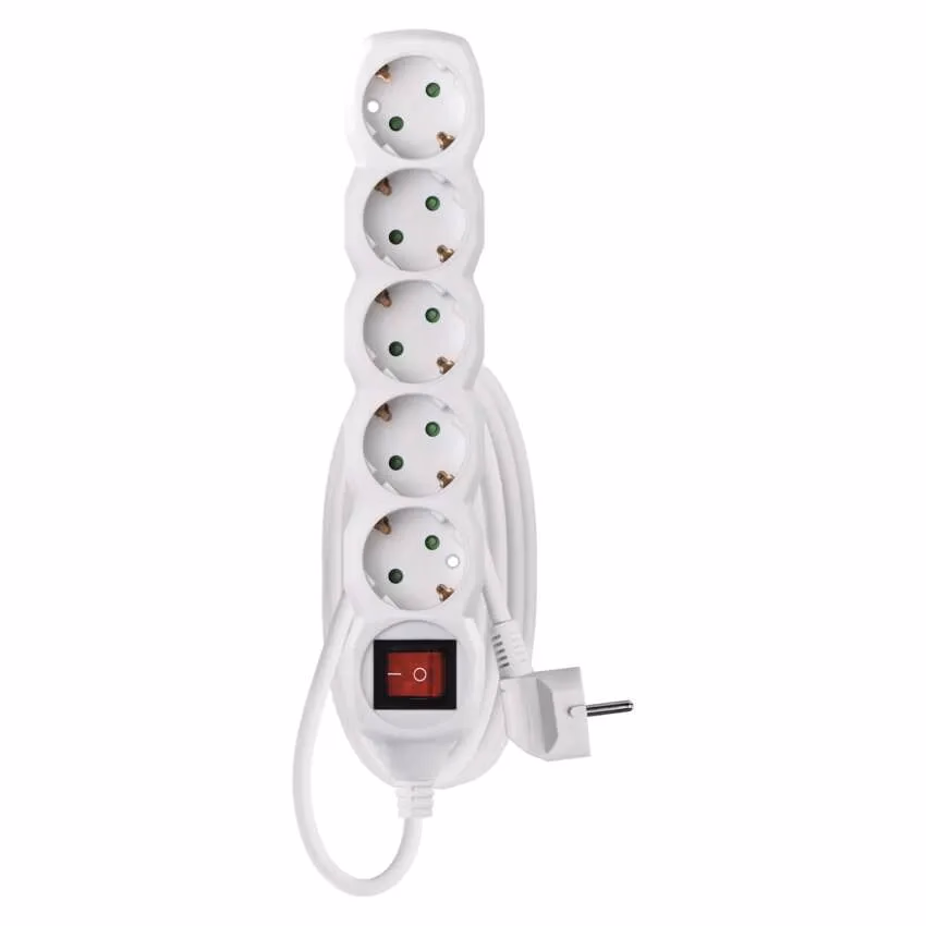 hossz: 1,4 m, aljzatok száma: 5× 2P + PE SCHUKO, kapcsoló, feszültség/áram: 250 V~/16 A max., max. terhelés: 3 680 W, szigetelés típusa: PVC, szín: fehér, vezeték: H05VV-F3G 1,0 mm², gyerekzár, az aljzatok és dugók anyaga: műanyag, értékesítési csomagolás: 1 db, akasztható, garancia-időszak: 2 év