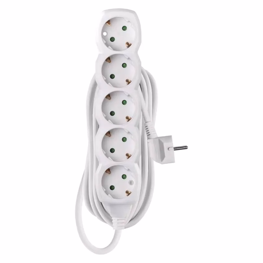 hossz: 5 m, aljzatok száma: 5× 2P + PE SCHUKO, feszültség/áram: 250 V~/16 A max., max. terhelés: 3 680 W, szigetelés típusa: PVC, szín: fehér, vezeték: H05VV-F3G 1,5 mm², gyerekzár, az aljzatok és dugók anyaga: műanyag, értékesítési csomagolás: 1 db, akasztható, garancia-időszak: 2 év