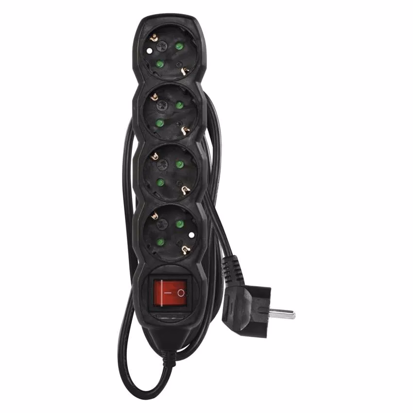 hossz: 1,5 m, aljzatok száma: 4× 2P + PE SCHUKO, kapcsoló, feszültség/áram: 250 V~/16 A max., max. terhelés: 3 680 W, szigetelés típusa: PVC, szín: fekete, vezeték: H05VV-F3G 1,5 mm², gyerekzár, az aljzatok és dugók anyaga: műanyag, értékesítési csomagolás: 1 db, akasztható, garancia-időszak: 2 év