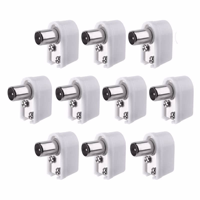Hajlított IEC csatlakozódugó koaxiális kábel csatlakoztatásához. Fehér szín. Műanyag. 10 darabos kiszerelésben elérhető.