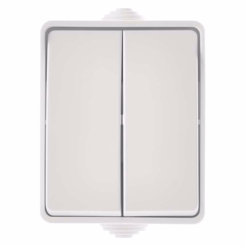 termék: 5. sz. soros kapcsoló (csillár), típus: 250 V~/10 AX, szín: fehér, összeszerelés módja: falra, védettség: IP54, típus: 2 gomb, klasszikus, vízálló, értékesítési csomagolás: 1 db, PE csomag, garancia-időszak: 2 év
