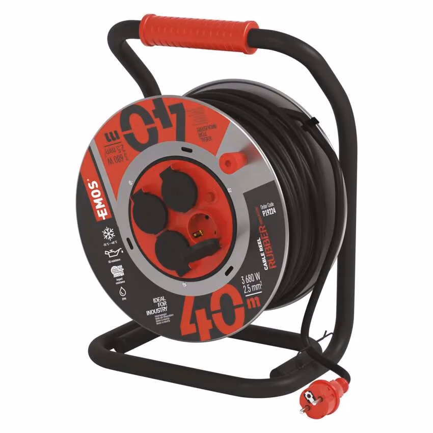 Megbízható segítség minden szakembernek – hosszabbító kábel robusztus szerkezetű orsóval és fémházzal. Lehetővé teszi akár négy villamos berendezés csatlakoztatását. Köszönhetően a 2,5 mm² átmérőjű vezetéknek a teljesen letekercselt kábel akár 3 680 W (16 A) túlterhelést is képes kezelni. Nagy előnye 40 m hossza, amely rugalmas, korlátozásmentes munkavégzést tesz lehetővé. A H07RN vezeték ellenáll közepes és nagy mechanikai igénybevételnek. A hosszabbító vezeték nedves környezetben is használható, mivel vízálló, továbbá -25 °C és +60 °C között hőálló is.