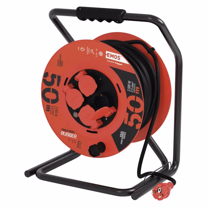 EMOS Kültéri kábeldob 50 m / 4 aljzat / fekete / gumi / 230 V / 2,5 mm2, IP44