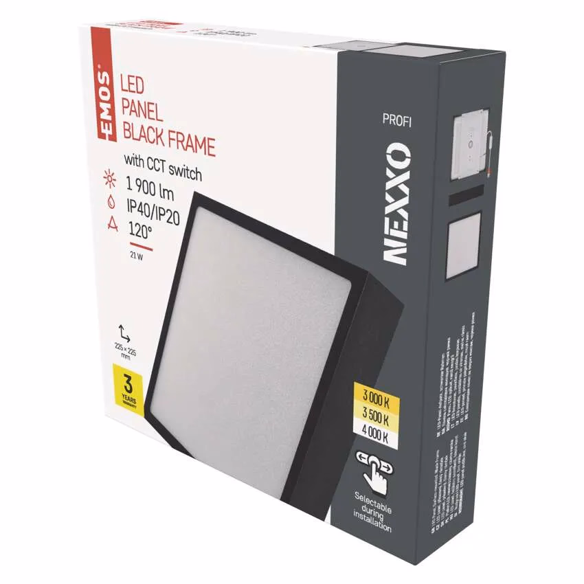 EMOS LED felületre szerelhető lámpatest NEXXO, négyzet, fekete, 21W, állítható színhőmérséklet