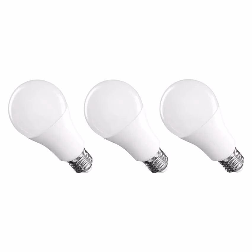 technológia: LED, foglalat: E27, fény színe: meleg fehér, helyettesítő: 100 W, forma: A60, fényáram: 1 521 lm, színhőmérséklet: 2 700 K, fogyasztás: 13 W, sorozat: CLASSIC, fényhasznosítás: 117 lm/W, energiaosztály: E, sugárzási szög: 180°, élettartam: 30 000 óra, garancia-időszak: 3 év, teljesítménytényező: 0.50, kapcsolási ciklusok száma: 30 000, színvisszaadási index (CRI): Ra >80, chipek típusa: SMD, feszültség: 230 V~/50 Hz, méretek: 60 × 60 × 120 mm, értékesítési csomagolás: 3 db, doboz