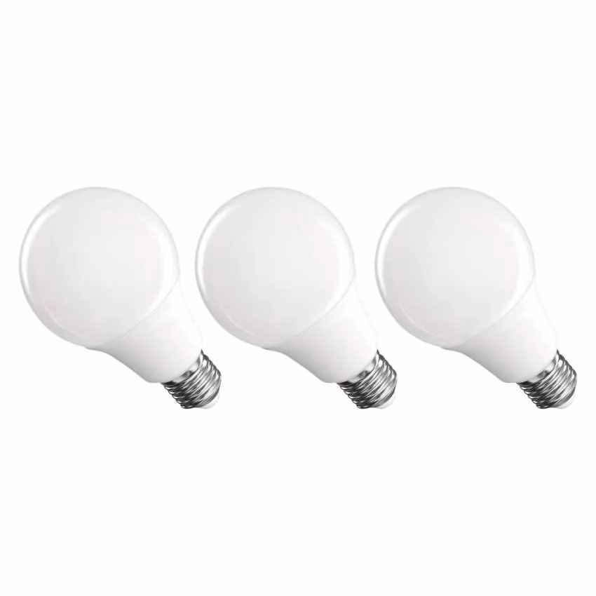 technológia: LED, foglalat: E27, fény színe: meleg fehér, helyettesítő: 75 W, forma: A60, fényáram: 1 055 lm, színhőmérséklet: 2 700 K, fogyasztás: 9,5 W, sorozat: CLASSIC, fényhasznosítás: 111 lm/W, energiaosztály: E, sugárzási szög: 180°, élettartam: 30 000 óra, garancia-időszak: 3 év, teljesítménytényező: 0.50, kapcsolási ciklusok száma: 30 000, színvisszaadási index (CRI): Ra >80, chipek típusa: SMD, feszültség: 230 V~/50 Hz, méretek: 60 × 60 × 109 mm, értékesítési csomagolás: 3 db, doboz