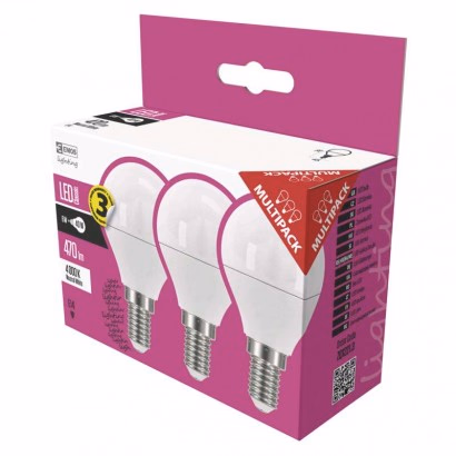 EMOS LED izzó Classic Mini Globe / E14 / 5 W (40 W) / 470 lm / természetes fehér. 3db/doboz