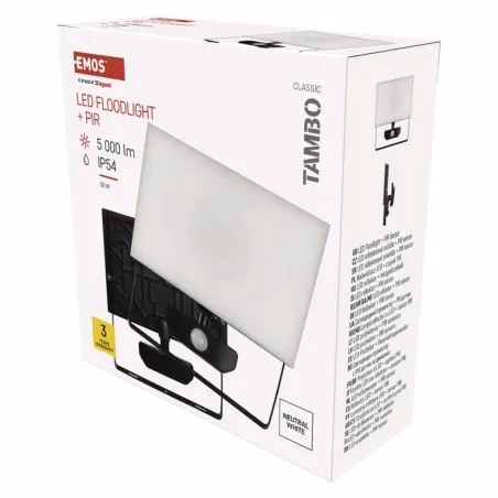 Emos LED reflektor TAMBO PIR, 50 W, 5000 lm, természetes fehér, fekete