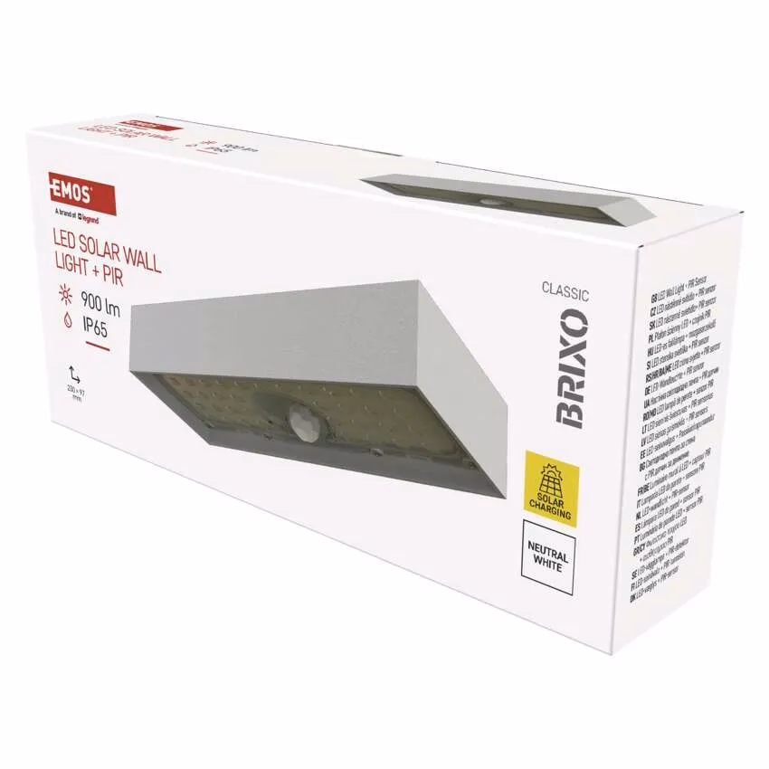 EMOS LED SOLAR lámpatest BRIXO PIR, 900lm IP65 természetes fehér