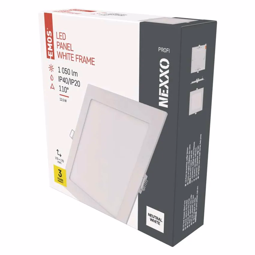 EMOS LED süllyesztett lámpatest NEXXO, négyzet, fehér, 12W, természetes fehér