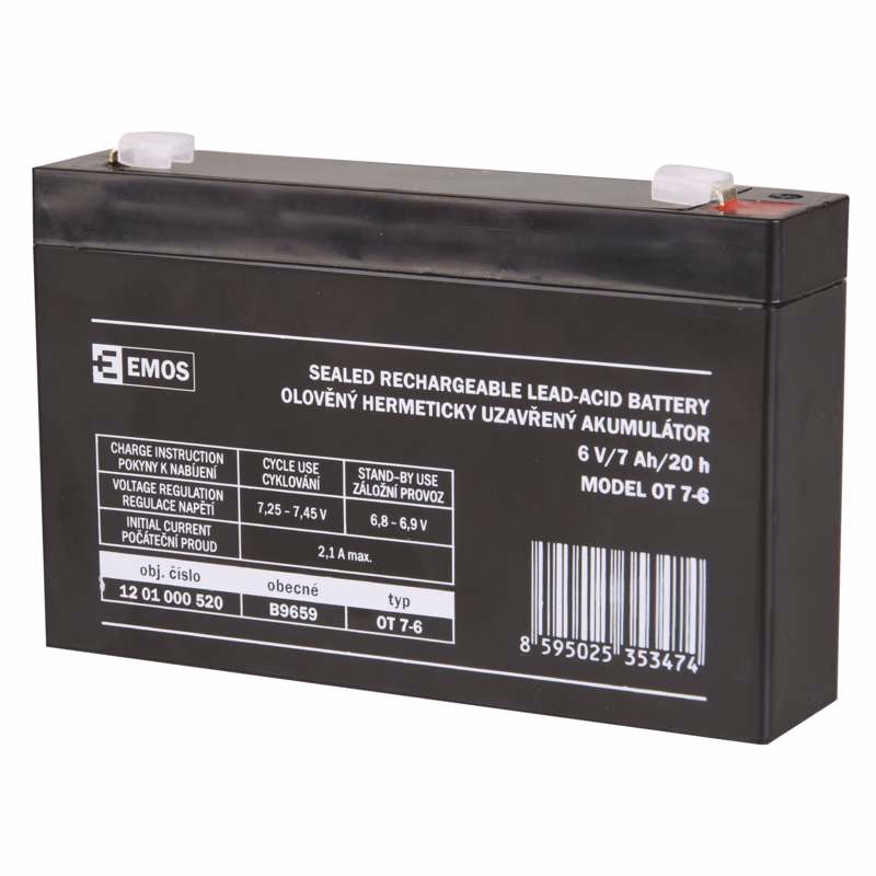Az EMOS akkumulátor tartaléktelepként használható szünetmentes tápegységekhez, RBC készletekhez, elektronikus rendszerekhez biztonsági riasztórendszerekhez, tűzjelző rendszerekhez, gyermekjárművekhez stb. A karbantartást nem igénylő, AGM kivitelű, biztonsági szelepes ólom-savas akkumulátor bármilyen helyzetben használható. Az optimális élettartam szünetmentes tápegységben 5 év.