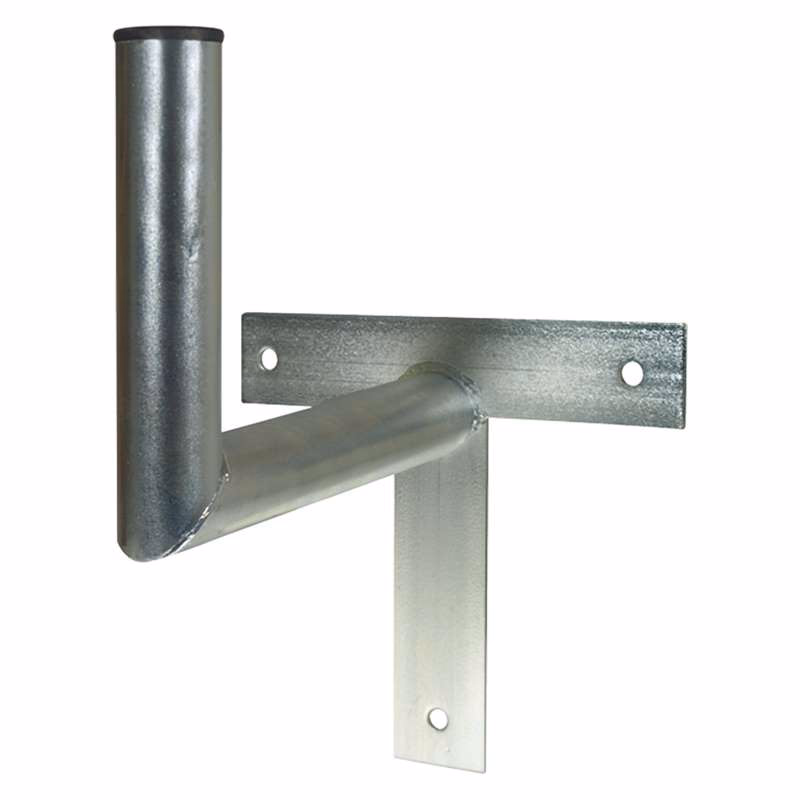 Univerzális antennaállvány falra szereléshez. Cső átmérője: 40 mm, állvány magassága: 150 mm, távolság az alaptól (faltól): 350 mm. Az állvány galvanikus cink burkolattal rendelkezik.
