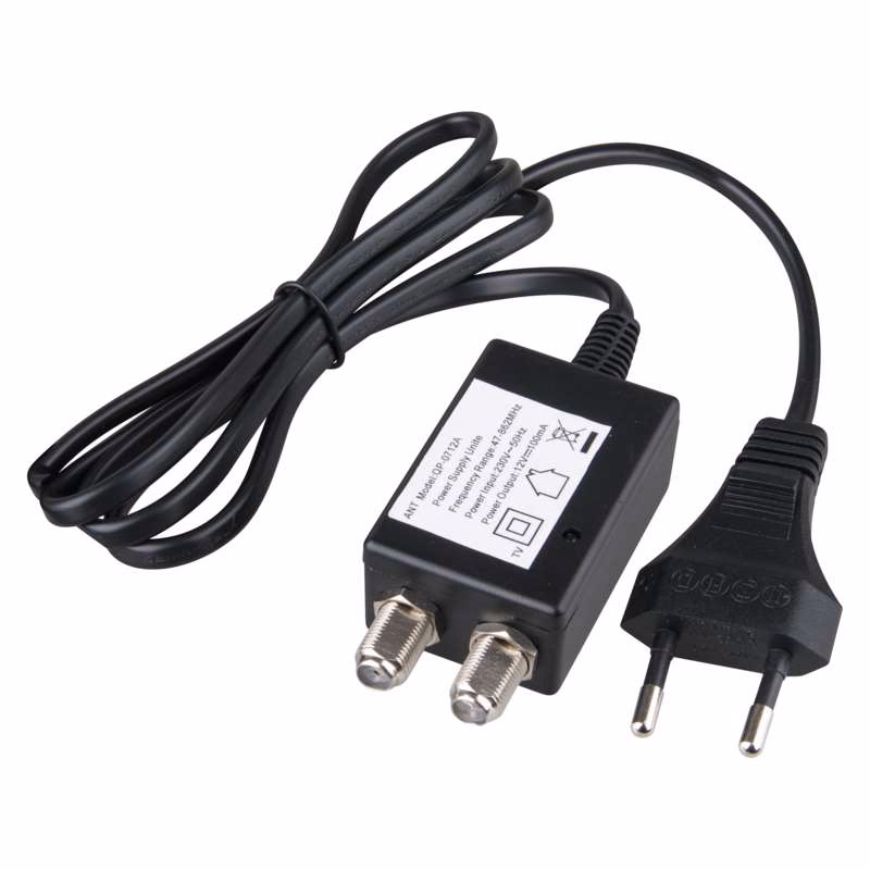 termék: tápegység, típus: SMPS kapcsolt, a következő termékekhez tervezett: antenna előerősítők táplálása, bemeneti feszültség: 110–230 V, kimeneti feszültség: 12 V, kimeneti áram: 100 mA, ECO dizájn, fogyasztás készenléti állapotban: <0,3 W, zavarszűrő kondenzátor: 470 µF, tápegység csatlakozó, bemeneti csatlakozó: F csatlakozó, kimeneti csatlakozó: F-csatlakozó, a tápegység csatlakozó beiktatási csillapítása: 1 dB, tápkábel: 1,5 m, max. kimeneti terhelés - állandó / csúcs: 100 mA, méretek: 24 × 68 × 35 mm, értékesítési csomagolás: 1 db, doboz, garancia-időszak: 2 év