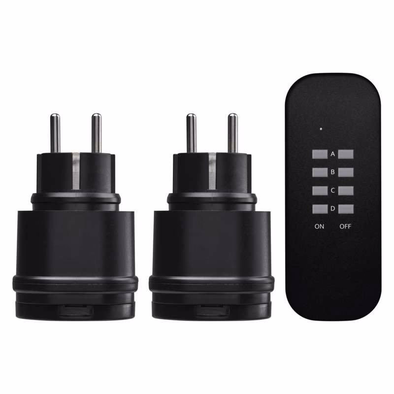 termék: távolról irányítható aljzatok, 2 aljzat + 1 távirányító, típus: SCHUKO, feszültség/áram: 250 V~/13 A max., max. terhelés: 3 000 W, szín: fekete, gyerekzár, védettség: IP44, anyag: műanyag, aljzatok száma: 1× 2P + PE, távvezérlő: tápellátás 1× 3 V CR2032 (tartozék), jel hatótávolsága: akár 30 méter szabad térben, könnyű betanítás: nem szükséges a dugaljak párosítása és nem kell telepíteni, a dugaljak automatikusan párosodnak a távvezérlőn lévő nyomógomb megnyomásával., vezérelhető: akár 4 aljzat, jelátviteli frekvencia: 433,92 MHz, kültéri használat, értékesítési csomagolás: 1 db, doboz, garancia-időszak: 2 év