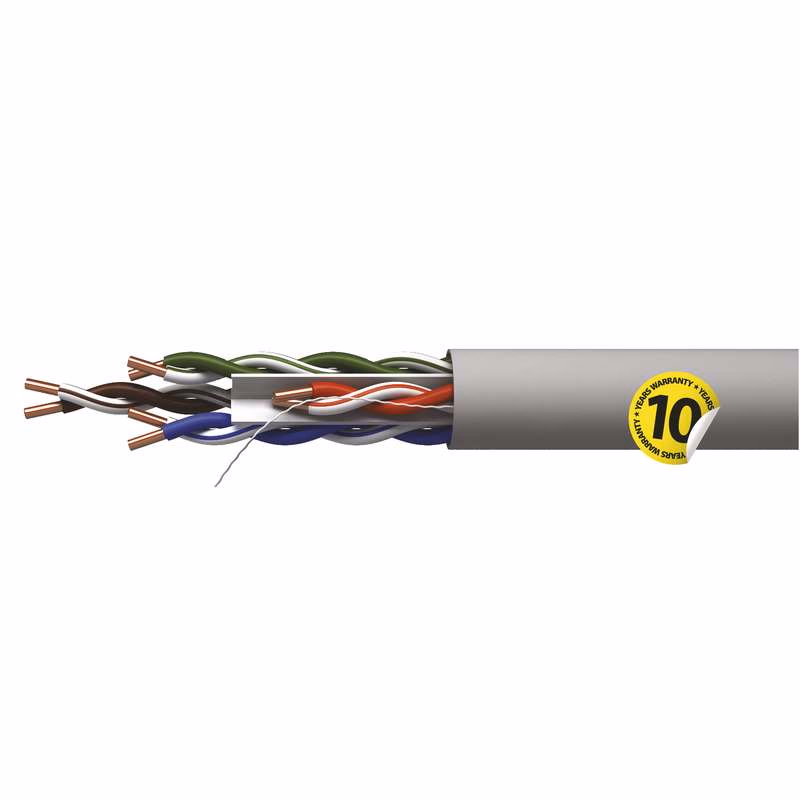 Nem árnyékolt, kiváló minőségű vízszintes kábel, CAT6 kategória PVC-burkolattal. A vezetők magja nem újrahasznosított rézből készült. A kábel megfelel az építési termékekre vonatkozó szabályozásoknak.