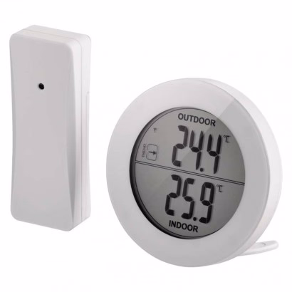 Az EMOS digitális vezeték nélküli hőmérő első pillantásra felhívja magára a figyelmet a 64 mm átmérőjű fehér kijelző szokatlan kerek megjelenésének köszönhetően. Az állomás természetesen falra szerelhető.