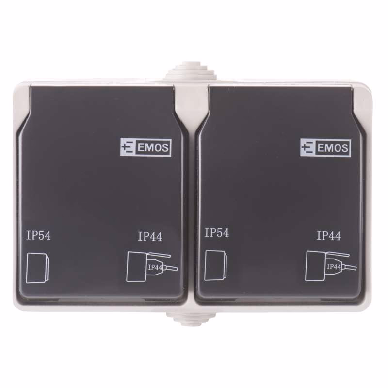 EMOS vízálló dupla SCHUKO fali aljzat védőtokkal