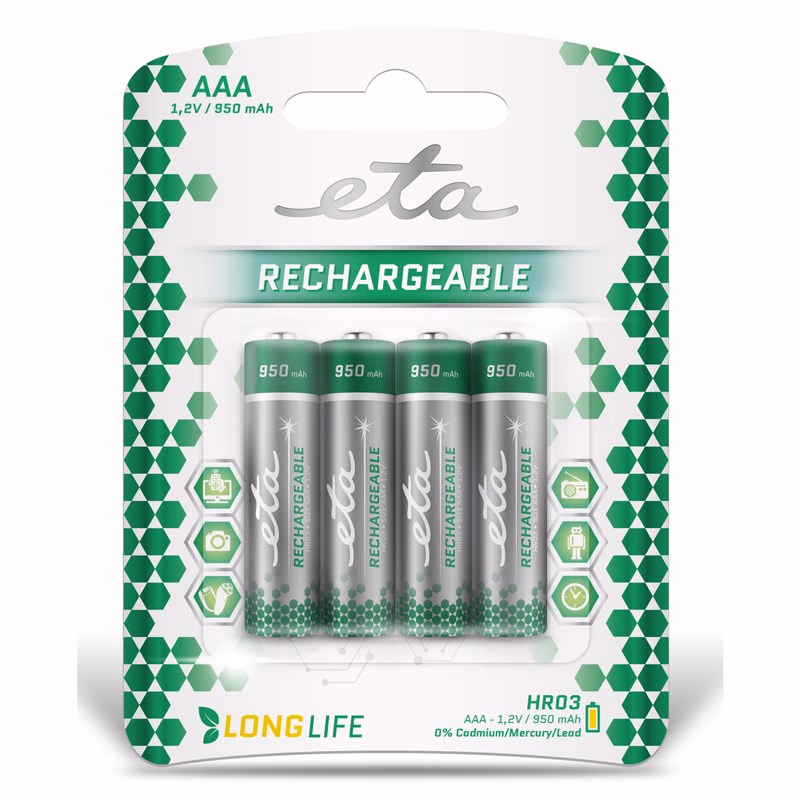 ETA NiMH újratölthető elem HR03 (AAA) 950mAh 4db. 300+ töltési ciklus