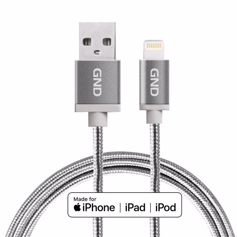 GND Lightning / USB kábel 2 méter, fonott - titán szín Adat- és tápkábel MFI-tanúsítvánnyal Apple-hez, 1 méter hosszú, titán színű
