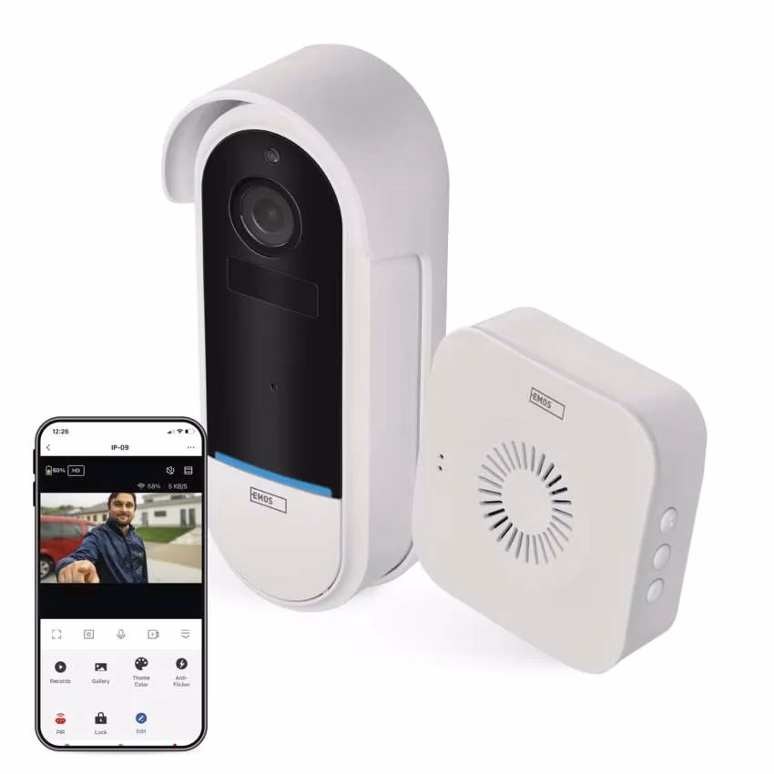 terméktípus: videó csengő, automatikus képtárolás, kiegészítő beltéri csengő, tápegység beltéri csengőhöz: 3× AA (LR6) 1,5 V DC (tartozék), a beltéri harang dallamainak száma: 4+0+0, szerelés: falra + állványra, kameraegység táplálása: tápegység DC 5 V/1 A (tartozék), hangerőszabályzó, kameraegység gombjainak száma: 1, szükséges kábelezés: kábelezés nélkül, maximális éjszakai látótávolság: 10 méter, a kamera érzékelőelemei: 3,2 mm, F2,0, szín: fehér, a kameraegység méretei: 145 × 57 × 41 mm, kamera látószöge: 130°, tartozék tápegység, védettség: IP65, kamera felbontása: 1 920 × 1 080, mozgásérzékelés, IR CUT, támogatott OS: Android, iOS, kompatibilitás: EMOS GoSmart, Tuya, Lidl, Smartlife, nyitott rendszer, protokoll: Wi-Fi, jelátviteli frekvencia: 2,4 GHz WIFI, tárolás SD-kártyán, felhőalapú tárolás, lopás elleni védelem, hangalapú asszisztensek általi vezérlés, hangkommunikáció: kétirányú, értesítések a mobilalkalmazáshoz, WebRTC funkció, egyéb funkciók: lopás elleni védelem, alkalmazási nyelvek: EN, CZ, SK, PL, DE, HU, SI, FR, + 60 másik nyelven, a csomag tartalma: 1× ajtócsengő, 1× vezeték nélküli ajtócsengő, 1× tartó, 1× csavarkészlet, 1× csavarhúzó, 1× RESET tű, 1× hálózati adapter, 1× USB kábel, 3× AA LR6 1,5 V-os elem, 1× használati útmutató. , garancia-időszak: 2 év, értékesítési csomagolás: 1 db, doboz, éjszakai látás