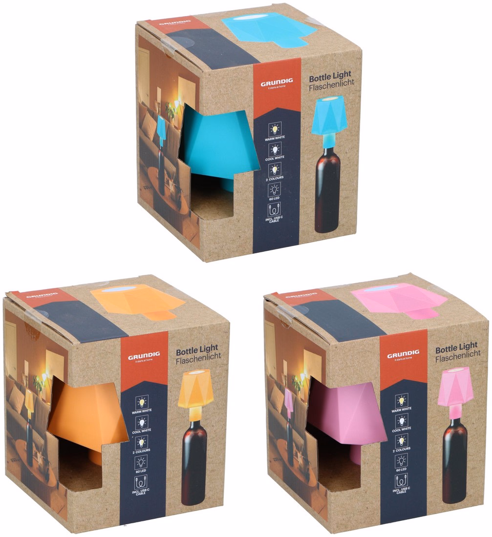 Gallery showing 4 images of GRUNDIG Lámpa üvegre csatolható 60LED 3 féle 14x9x9cm
